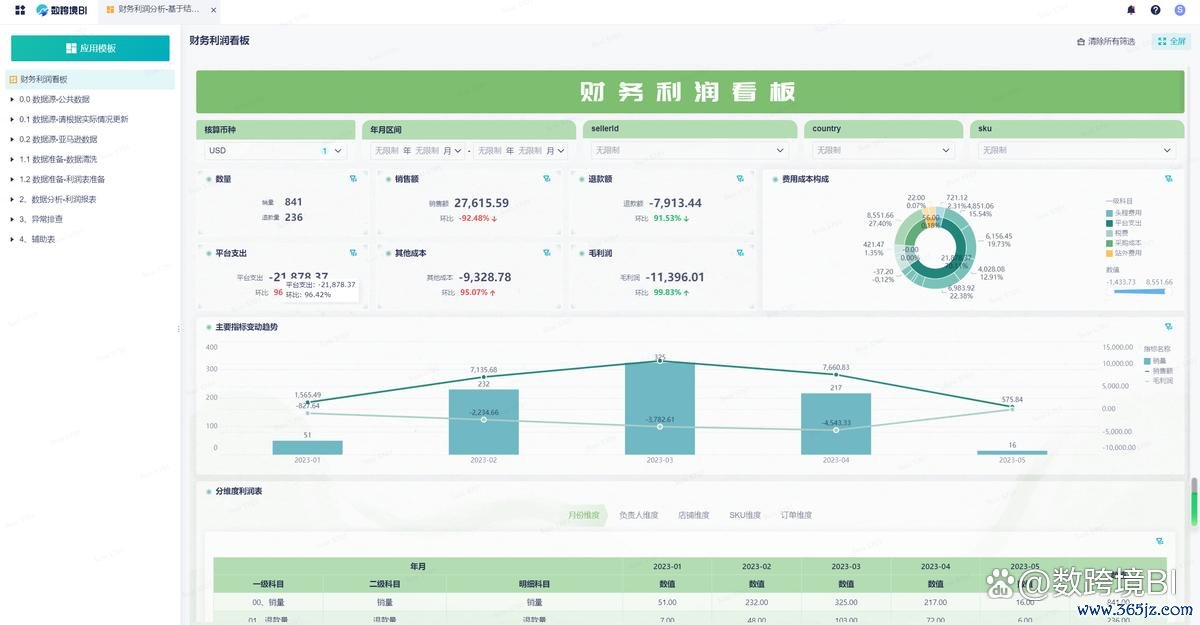3、用数跨境BI算单品利润押大小赌钱软件,店铺平台比拟多,是以要是思望望哪个品销量高、毛利高很难,要从各个平台把数据下载下来,然后再一顿分析,花许多技巧,当今不需要了,用这个用具算利润的时候就能顺带算出来,下钻能看到每个sku的销售情况,一目了然