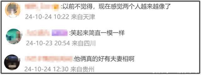 除了算作上的相似以外,他们两个东说念主的长相也越来越相似了。他们笑颜满面地站在那里,非论是眼睛报复的弧度,如故嘴角上扬的弧度,王人格外接近,连身上的浮松感王人是一样的。看着两个东说念主的近照,网友们纷纷直呼“越来越像”、“笑起来险些一模一样”、“好有佳耦相啊”。