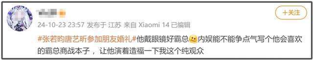张若昀和唐艺昕于近日一齐投入了友东说念主的婚典,并被曝光了现场相片。自从他们两个授室后,每一次二东说念主公开合体王人会引起网友的柔和,这一次也不例外。围不雅网友曝光的相片,环球发现张若昀的穿搭造型格外令东说念主惊喜,然而唐艺昕的造型却有点狼狈。