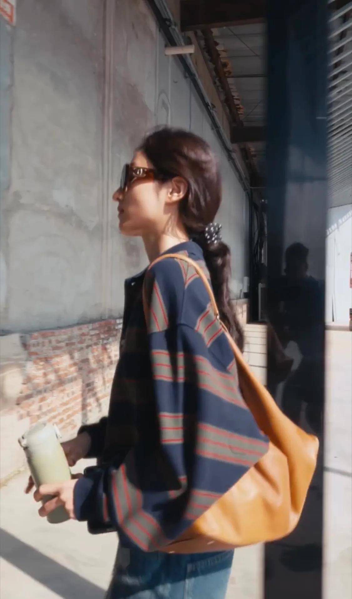 刘亦菲拿着LV新款的樱桃包来到拍摄现场,这款包价值三万多块,相貌秀好意思,很相宜刘亦菲。刘亦菲穿戴Lululemon的率领装,披着一件羊毛披肩,她戴着夸张的玄色墨镜进屋,她的“偷感”很重,果然个可儿的女东谈主。