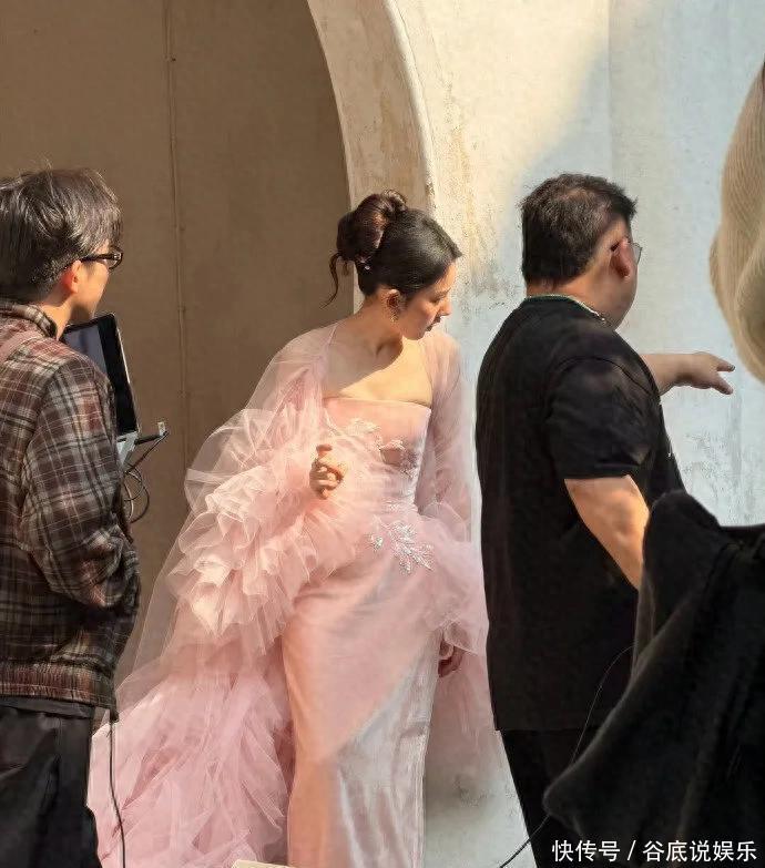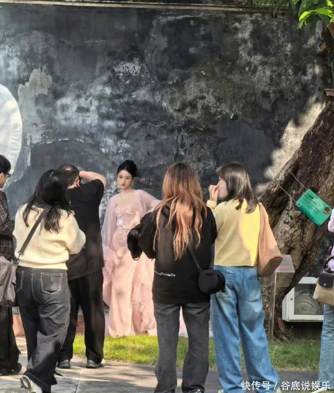 轻柔的樱花粉衬得她肌肤胜雪,裙摆上细密繁复的刺绣纹样遮拦巧念念,金线勾画的花叶跟着设施摇曳生辉,既带着仙女的娇俏灵动,又透着几分典雅大气的繁盛感。修身的剪裁完好勾画出纤细腰线,蓬松的裙摆又增添了几分黑甜乡氛围,行走间宛如从画中走出的古典好意思东谈主。