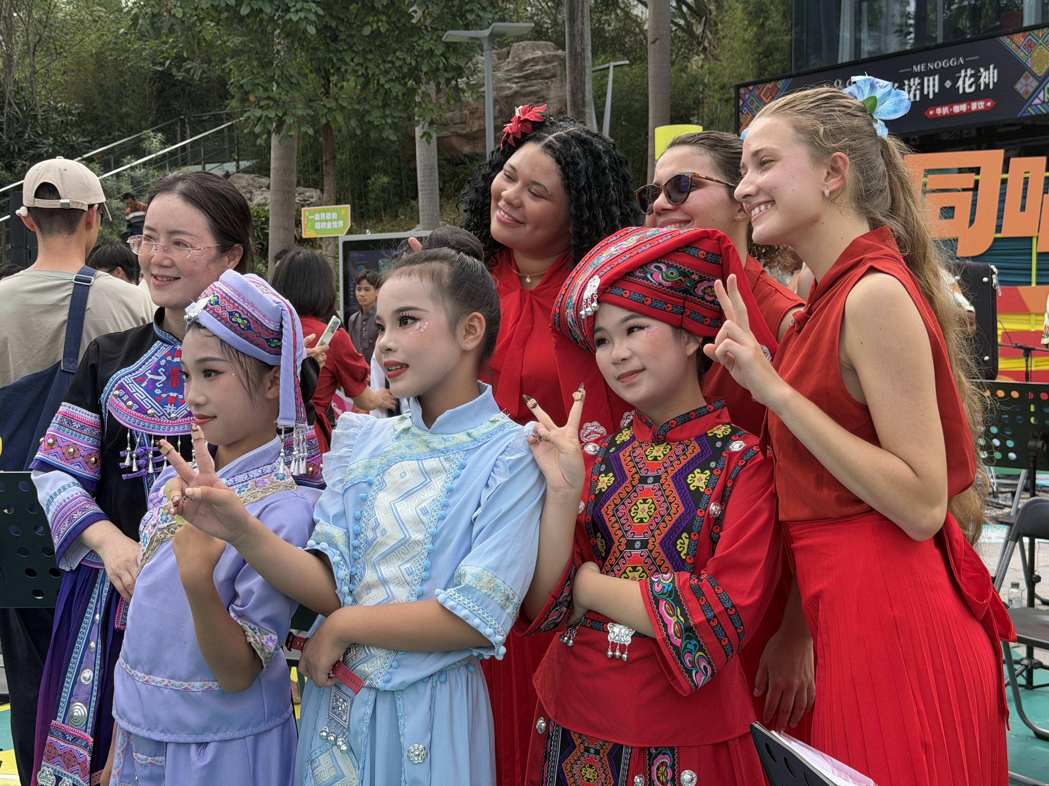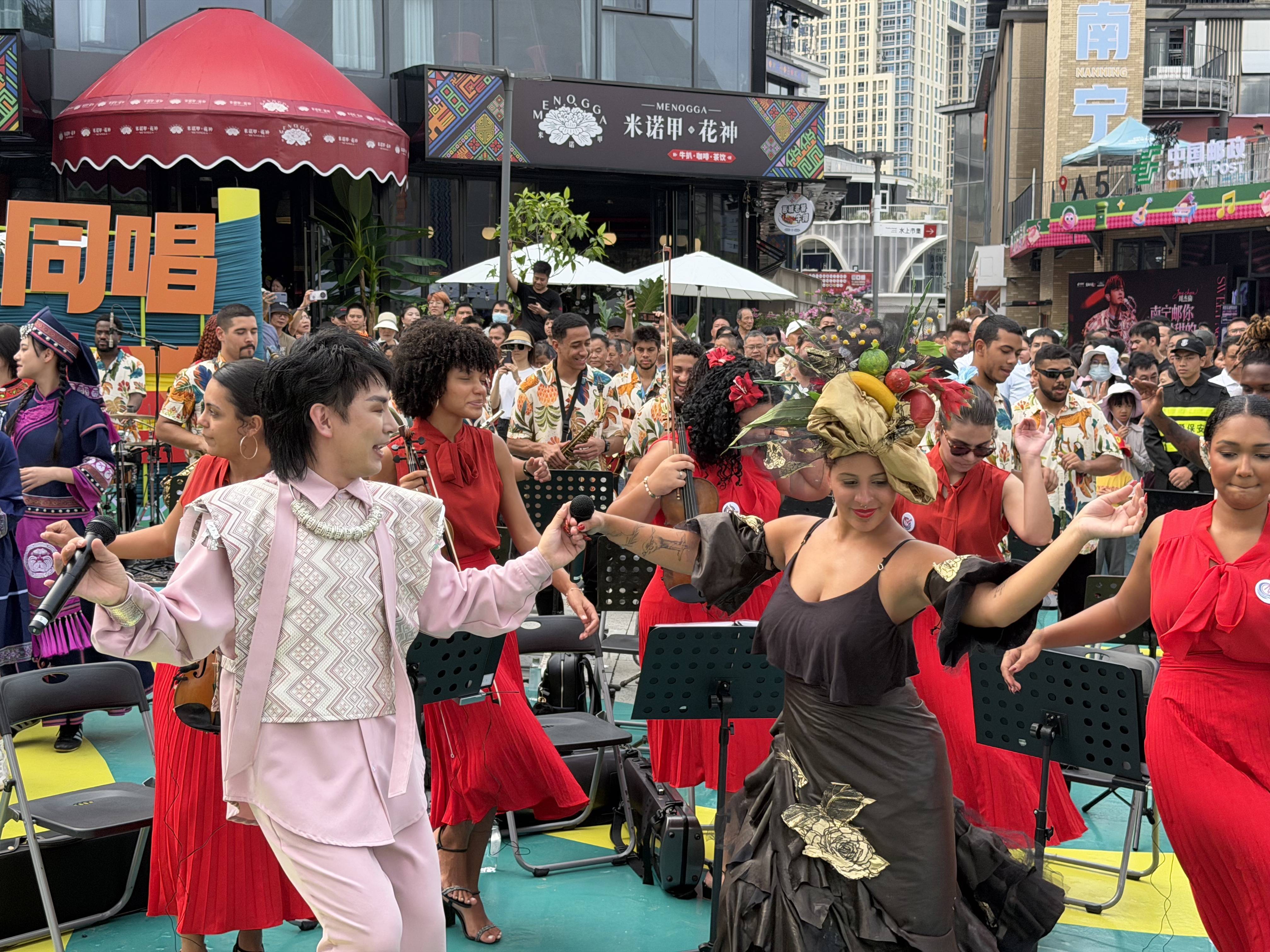 在“广西三月三”的节庆氛围中,音乐飘溢在南宁民歌湖的每个边缘。中外友东谈主身着盛装,共同唱响广西民歌,相互配合理会。《村歌好比春江水》中“这边唱来那边和”的唱词,恰是这场疏浚最纯确实写真。你来我往的一唱一和,不仅仅音乐上的呼应,更是文化上的辘集:不同文雅在倾听中冉冉相互了解。