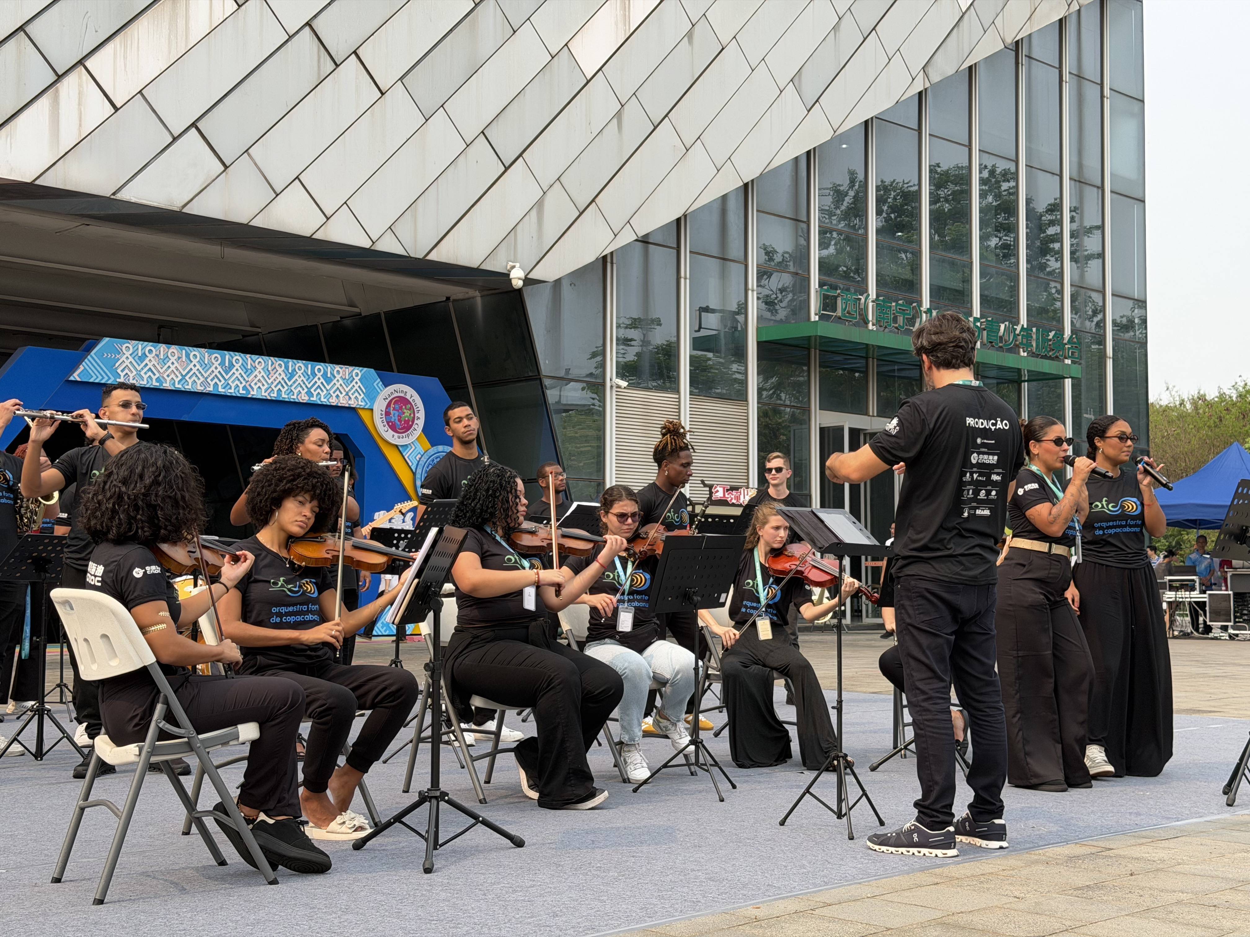 在南宁市青少年四肢中心,巴西乐手还与身着当地传统民族衣饰的孩子们同台配合演唱《称愿》。巴西乐手边奏边唱,孩子们则负责和声,器乐与东谈主声交汇在一齐,和善而流通。看着孩子们崇敬插足、全情赞扬,贡迪姆说,我方深受颠簸。她还提到,不雅众关怀的回复,一下子拉近了相互的距离。